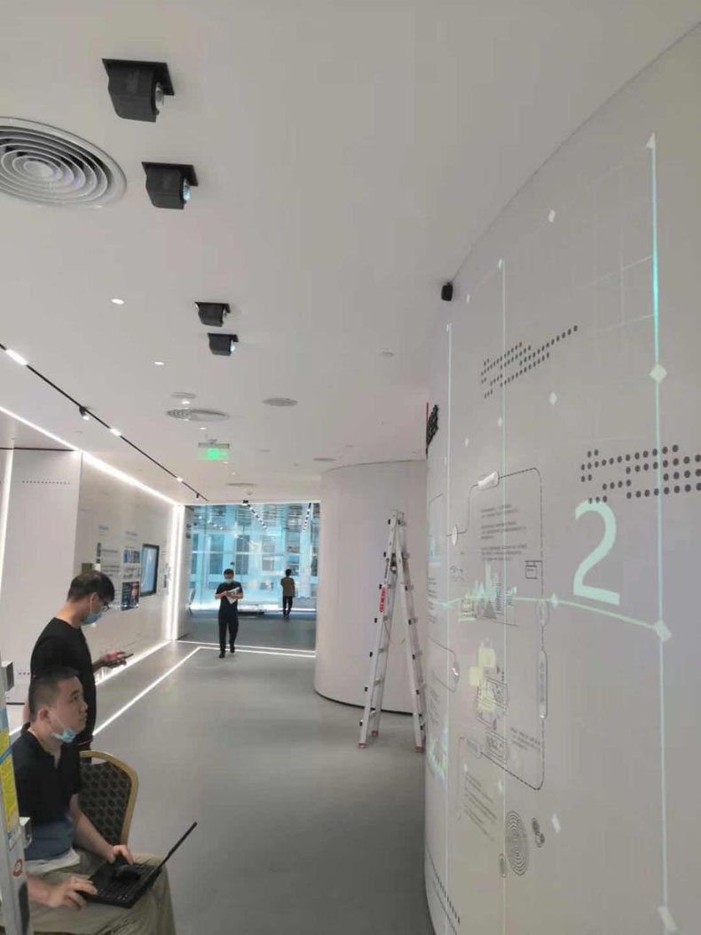 負責展廳設計和內容制作、深圳驕陽視覺創意科技股份有限公司技術總監彭云先生表示:“在搭建過程中,我們遇到很大困擾,普通投影機無法滿足空間層高和畫面長寬比,而富士膠片FP-Z5000則可以完全適配環境所需,獨具一格的旋轉鏡頭讓我們的隱藏式設計得以實現,富士膠片官網提供了專業的模擬器工具,通過模擬計算的數據,我們最終選擇了這款產品,現場安裝與調試也令人滿意,項目難點得以攻破。我們很期待在未來的項目中應用富士膠片投影機創造更多精彩項目。”