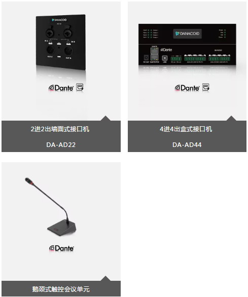 作為世界領先的專業音視頻制造商之一,DANACOID在很早就與Audinate建立了合作伙伴關系并廣泛使用Dante,使得眾多產品符合數字音頻網絡標準,為用戶提供極致完美的音頻體驗。