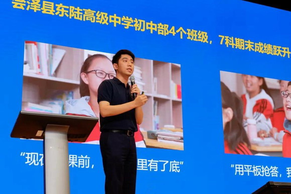“易課堂的易是‘易用的易’,也是‘變化的易’。希沃易課堂服務課前、課中、課后的教學與學習,致力于為師生提供簡易、實用、穩(wěn)定的信息化工具,以減負提效,推動教育變革。”希沃學務事業(yè)部總經(jīng)理邱澈從產(chǎn)品初衷與產(chǎn)品邏輯講起,為與會嘉賓介紹了希沃易課堂支撐未來教學變革的理念與途徑。中間,他分享了會澤東陸高級中學的7科期末成績躍升全縣第一與明明同學愛上物理課的真實故事,明明同學覺得用平板搶答很刺激,物理課再也不枯燥了。