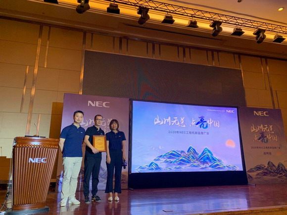 作為推廣會的核心環節,會上為四川華影智業科技有限公司舉行了一級代理商的授牌儀式,華影智業總經理吳鵬出席活動并講話。吳總表示,華影智業優勢在于可以提供前期策劃、光路設計、安裝集成服務等專業化、定制化的周邊服務,以實現用戶的個性化需求。展望未來,吳總對工程投影機市場充滿信心,將與NEC同心協力,開拓市場。