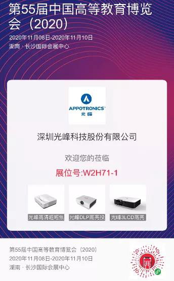 2020年11月8-10日,深圳光峰科技股份有限公司將攜最新產(chǎn)品亮相第55屆中國高等教育博覽會(2020),敬請期待!