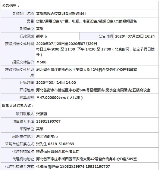采購項目名稱: 某部電視會議室LED屏采購項目