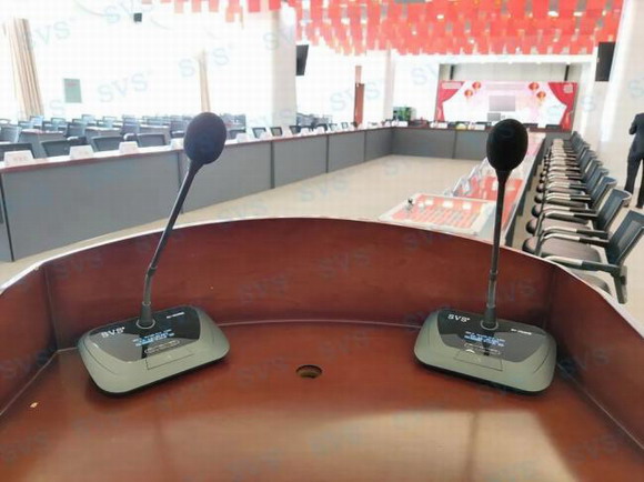 此次SVS為某銀行打造數字化會議項目,為客戶推薦使用新型會議系統單元SV-WM90A/B,內有液晶屏,可顯示電量、欠壓報警、頻段信息、信號強弱、開關狀態等信息,一目了然;進口高保真、遠距離拾音咪芯和防手機干擾電路,保證發言效果。