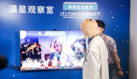 9月4日,在天漠音樂節上,當前來圍觀海信全新一代社交電視S7F的乃萬等音樂人喊出“海信小聚”, S7F不僅快速響應乃萬的聲音,全景云臺攝像頭還在人群中準確捕獲了聲音,把她穩穩放在C位。