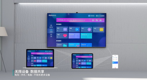 除了算力,新一代社交電視還針對存儲空間的痛點進行了突破,首次創造性地將NAS和大屏相結合,標配1TB的私有云空間。同時,依托海信在云存儲、云計算上的技術積累,通過自主研發的Hi Drop數據傳輸與同步方式,打通手機、電腦、電視等設備間的屏障,實現數據的無縫流轉。