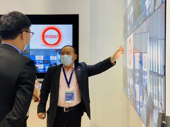 現(xiàn)場工作人員為來賓講解產(chǎn)品亮點