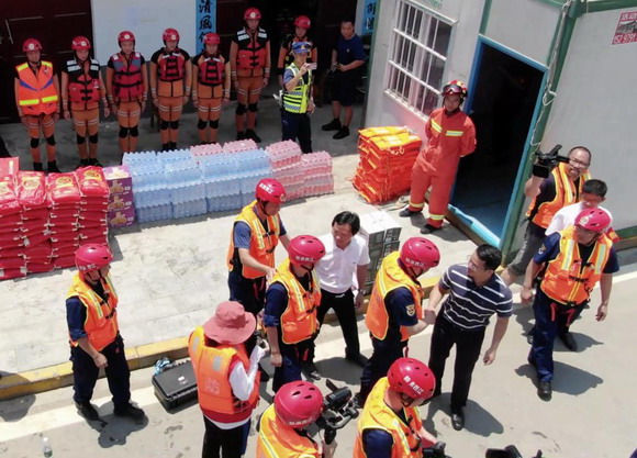 接到保障要求,華平迅速組建抗洪救援通信保障技術專家組,從上海出發,攜照明布控球、現場調度臺、無人機等設備趕往搭建于九江的前線指揮部,全力投入救援通信保障中。華平的總經理胡君健親自趕赴九江前線,攜水果、牛奶等物資慰問一線的救援戰士,受到總隊和支隊領導的衷心感謝。