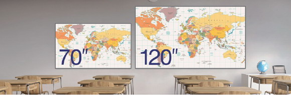 CB-735F可根據(jù)教室大小和實際應(yīng)用,輕松調(diào)整投影畫面尺寸,最大可支持70.3cm投影120英寸16:9大畫面。
