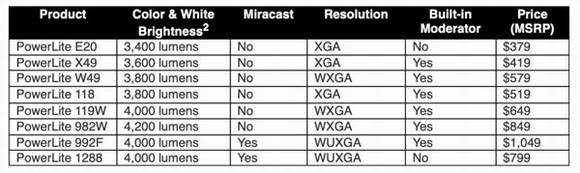 PowerLite E20,X49,W49、118、119W和982W現已上市。PowerLite 1288將于9月下旬上市,PowerLite 992F將于10月上市。
