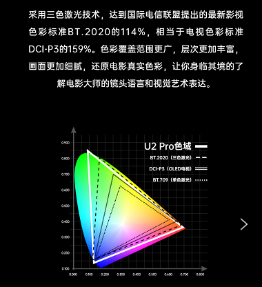 據海信介紹,海信全色激光電視產品采用RGB三基色全色光源架構,顯色更加純凈,在亮度、色域以及沉浸感體驗上都有明顯提升;色域覆蓋超越高端影院近50%,激光電視標配全色,帶來的產品體驗進步非常明顯。