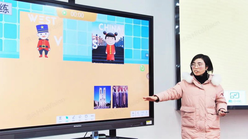 決賽展評活動中,四位老師在說課現場充分利用鴻合智能交互平板搭配鴻合π交互教學軟件進行展示,嫻熟的使用軟件內置的各類豐富功能讓課堂教學異彩紛呈。老師們不僅能便捷的利用鴻合軟件呈現精美的視頻、音頻、圖片等資源,還能流暢使用投屏、書寫、蒙層、鏈接等多種功能將信息技術與學科教學深度融合并延伸。