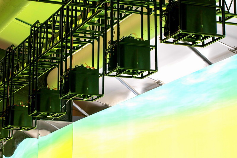 “丹青劇場”是展館內最大的弧面環幕單元,機位和成像距離相比“盛世長卷”的場景更為復雜。對于同一型號的投影機而言,環幕場景需要較高的適配性。