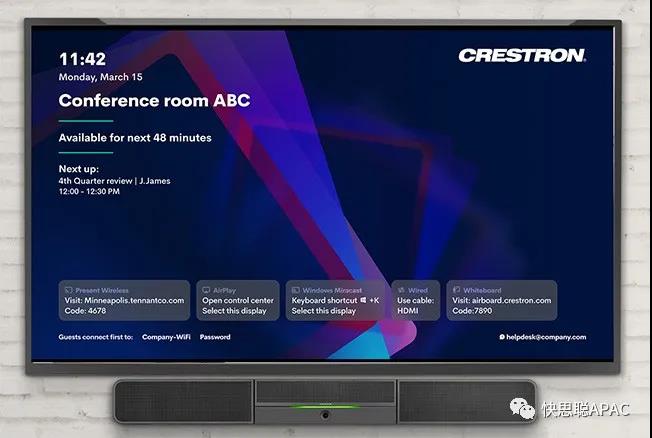 智能會議室的功能,包括內(nèi)置顯示控制、占用感應(yīng)器,和觸摸屏集成等。當(dāng)您走進(jìn)房間,房間便會自動配合您的工作,而非被動響應(yīng)。