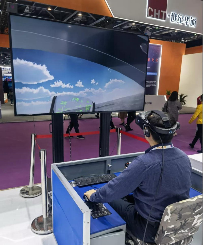 來自華航文化的1:1模擬航空母艦視景,通過佩戴VR沉浸式眼鏡,以第一人視角在虛擬環境中體驗航母艦載機起降過程,漫游航母甲板與機庫,了解艦載設備、飛行器等航母知識。利用虛擬現實技術的多源信息融合、強交互式反饋、高實景仿真的特點,使得用戶無需登艦,即可“親臨”航空母艦,完成專業飛行員視角的艦載機駕駛體驗。