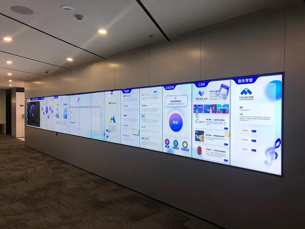 該15360*1710的豎屏LCD拼接項目位于騰訊音樂娛樂公司,同步無損的超高分的顯示畫面助力用戶更好地講述企業故事。文本、圖片、視頻均能顯示其中,同時僅需一臺筆記本或PAD即可實現大屏與控制電腦的連接,輕松掌握大屏顯示。