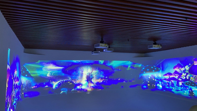 好的沉浸式體驗,能給人更大的視覺沖擊力。騎士系列CS5500HL 具備1920*1080全高清分辨率,精準的細節表現和豐富的層次,讓原本現代、富有生態趣味的展示場所,升級為充滿藝術感和夢幻感的奇妙體驗空間。特別是,DLP激光投影機憑借精準的色彩表現,外加CS5500HL強大的色彩校正技術,最終使多臺投影融合展現出完整統一的斑斕畫面。