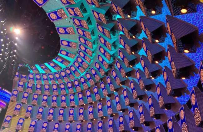 2021央視春晚融合了多種科技創新元素,舞臺主屏采用8K超高清巨型LED大屏幕,由光祥科技與國星RGB超級事業部 聯手打造,使用1515燈珠 為核心顯示器件,面積達320平方米,以春晚演播大廳的中心為圓心弧形布置;在觀眾席后區和上方的屏幕,與舞臺升降屏、地屏和天空的透明冰屏融為一體,構成一個穹頂演播空間 ,擴展了舞臺的視覺空間。晚會大屏在XR技術的加持下,帶給觀眾移步換景、身臨其境的沉浸式視覺盛宴。