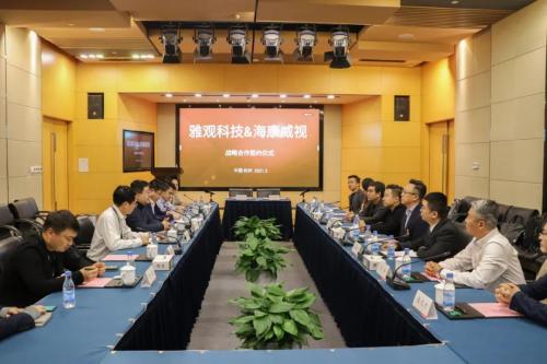 當天上午,雅觀科技CEO顧志誠、聯(lián)合創(chuàng)始人田陌晨、雅觀智能總裁王澤嘉、CIO高健倫一行,來到杭州市濱江區(qū)海康威視總部,海康威視高級副總裁徐習(xí)明、副總裁陳繼國、智慧事業(yè)部總經(jīng)理胡明輝以及智慧建筑的行業(yè)和銷售相關(guān)負責(zé)人接待了顧志誠一行。