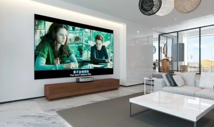 客廳是家庭的中心,是從公域到私域的過(guò)渡,在此會(huì)客、娛樂(lè)、休憩、歡聚?蛷d就是一家人團(tuán)聚的一個(gè)地方,凝聚家庭氛圍的一個(gè)地方。配上激光電視(超短焦投影機(jī)+白雪超短焦抗光屏幕)在客廳中,使之不用關(guān)閉燈光和窗戶也能正常觀看高清畫質(zhì),客廳的空間更為開(kāi)放,不僅擁有良好的通風(fēng)條件,更方便于人們隨時(shí)觀影?磩(dòng)畫、看電影、看球賽、玩游戲、唱歌、看直播,追劇...就選擇激光反射成像、大屏更護(hù)眼的激光電視(超短焦投影機(jī)+白雪超短焦抗光屏幕),帶來(lái)影院級(jí)的視覺(jué)沖擊和自然色彩被真實(shí)還原。