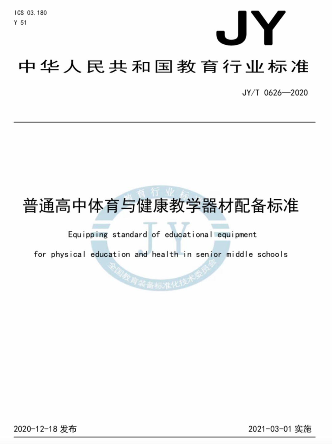 教育部發布的《普通高中體育與健康教學器材配備標準》、《小足球場地建設與器材配備規范》等教育行業標準于3月1日正式實施。