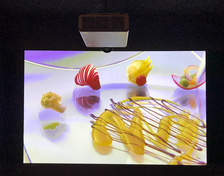 ▲利用超短焦鏡頭(ET-DLE020C)演示的正投方案,采用機型PT-FRQ100C