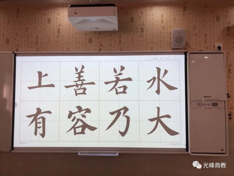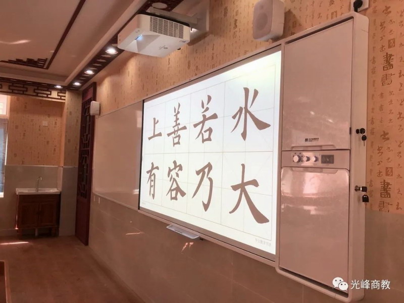 和小編一起來看西安市雁塔區(qū)某中學(xué),光峰激光高清超短焦商教投影機搭配電子白板,完美配合書法教室,大氣舒適護(hù)眼。即使白底黑字也不刺眼,即使沒有窗簾也依然清晰可見,即使坐在第一排側(cè)邊也沒有視覺死角。以人為本,保護(hù)視力。