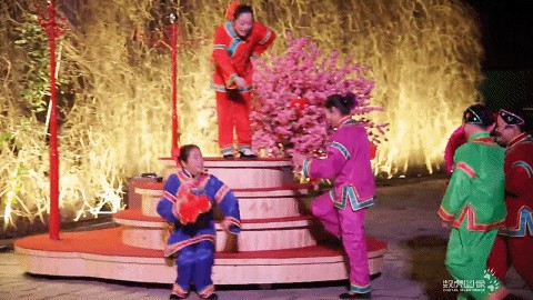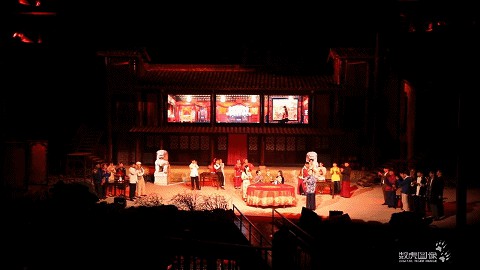 扮演媒婆的演員喜氣洋洋的在城門奔走相告,邀約觀眾前去胡府大院,看胡司令娶親。