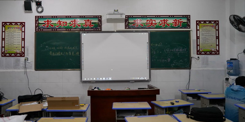 在車民小學教室中,安裝著東方中原捐贈的電子白板和投影機。從此,黑板上不再只有粉筆劃出的知識筆觸,還有光影交織而成的萬千世界,開拓孩子們的想象。