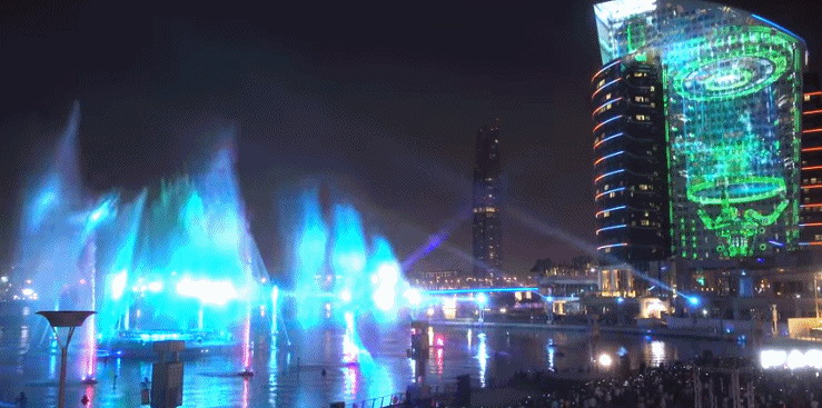 12臺投影機來營造美麗的海灣水幕,6個水幕共同組成一個寬68米、高13米的無縫巨幕,數百個LED燈光特效,360度的多媒體影像,全方位展示了“火、水、光、敬畏”為主題的現場表演。光影蜿蜒、盤旋,釋放火花,像水中的蛟龍,濺起水花,引得觀眾頻頻尖叫,不愧是節日城市,好一派熱鬧歡騰。在光的助力下,這里的水沸騰著,釋放出鮮有的能量,隨著夜幕降臨,一場水秀、一個故事正在上演。
