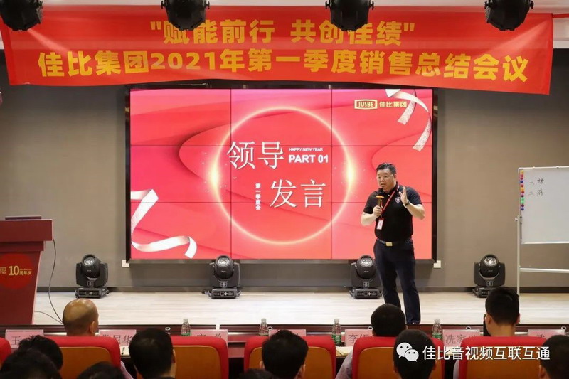 4月7日佳比集團(tuán)的第一季度銷售會議在集團(tuán)總部多媒體階梯室以主題“賦能前行,共創(chuàng)佳績”正式拉開帷幕。