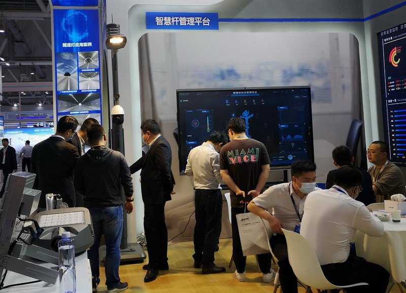 作為智慧城市數(shù)據(jù)采集的重要端口和5G基站的最佳載體,洲明現(xiàn)場設(shè)置的5G智慧桿也得到了現(xiàn)場觀眾的高度關(guān)注。