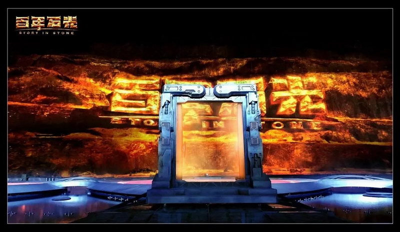 為了讓觀眾在觀看演出時能獲得身臨其境的感受,導演組和視覺設計團隊采用“山體成像”的設計理念來呈現精彩演出。但不同于其他光影秀,《百年石光》的成像并非承接于平坦良好的實體成像面,而是一個有百年歷史、人為開采留下的巨大巖壁。