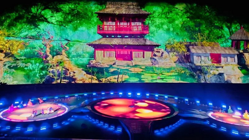 基于成像需求,導演組和視覺設計團隊最終選用巴可的UDX-4K40產品作為本次演出的投影設備。近70臺設計緊湊、色彩出眾、高質量3DLP技術的UDX-4K40 4萬流明高亮度激光投影設備拼接融合疊加成像,使畫面更具真實感。