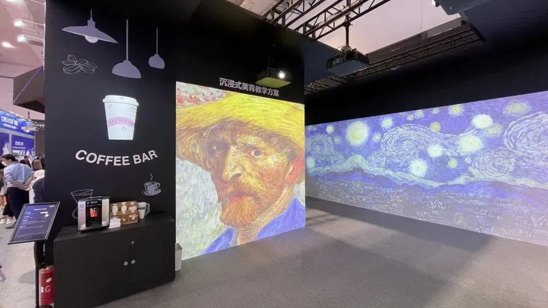 沉浸式美育教學方案應用了5臺愛普生CB-L1755U NL 15,000流明*2*3激光光源全高清投影機,保證了高清晰度和明亮的色彩。同時,通過運用投影,給師生們搭建出一個沉浸式的互動教學體驗BOX空間。