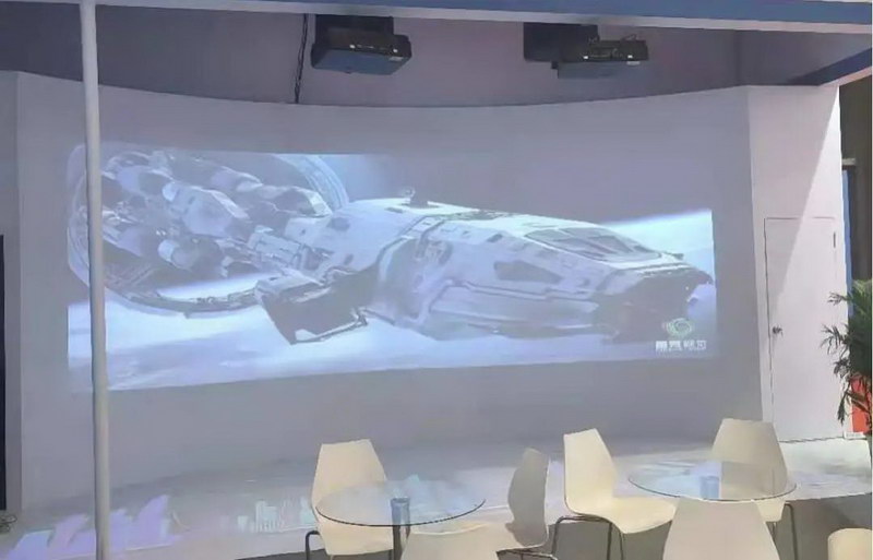 應(yīng)用說明:校園文化及黨建宣傳在當下的很多展廳中應(yīng)用廣泛,要求高畫質(zhì),色彩亮麗出色,性能穩(wěn)定,大尺寸畫面顯示。該展示方案是用2臺ROLY 封閉式光機系列的旗艦工程投影機,搭配0.68-0.8日本原裝短焦鏡頭利用拼接融合技術(shù),打造弧形大畫面投影墻。