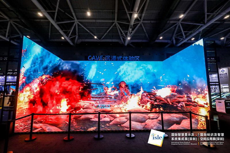 CAVE沉浸式體驗(yàn)區(qū)是新亞勝光電本次展位上最大的亮點(diǎn),更是整個(gè)展館最吸睛的展區(qū)。在現(xiàn)場,不停聽到觀眾的贊嘆,“哇,這也太真實(shí)了吧” “一會兒在炎夏游泳,一會兒在寒冬賞雪,季節(jié)隨意切換呀”“太震撼了!”......由LED顯示屏搭建的四維屏給觀眾帶來身臨其境的高科技虛擬現(xiàn)實(shí)體驗(yàn)。