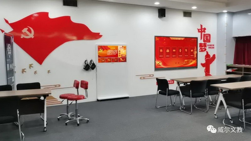 為充分落實習總書記在黨史學習教育動員大會的重要講話,南昌昌北某機關采用威爾文教黨建教室整體方案及技術支持。從教室的整體布局包含入黨誓詞、入黨流程、黨員文化書籍、獲獎情況進行規劃設計,同時結合智慧黨建平臺進行綜合應用,將互動及科技元素引入黨建活動室,豐富了黨史學習活動內容。