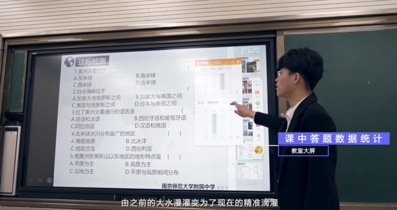 對于智慧課堂帶來的變化,地理老師羅春也深有感觸:“智慧課堂讓我感受到了精準教學的好處,它讓我們老師由之前大水漫灌式的教學方式,變成了現在的精準滴灌,對每個學生的整體情況有了更深一步的精準化理解,更清楚了解每個層次學生的需求。”在自己的課堂上,地理老師羅春常常會給學生推送隨堂測題,并且當場就能收集到學生的答題情況,更有利于及時掌握不同學生的理解水平,對后期的精準備課起到重要作用。