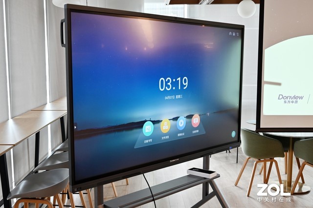 東方中原方舟系列會議平板坐在側邊也能看清屏幕。從實拍圖中可以看到,它的畫質清晰細膩,色彩還原精準自然。我們拍攝時是正午時分,窗外陽光強烈。但不管在哪個位置我們都能看清屏幕,完全沒有被反光所影響。