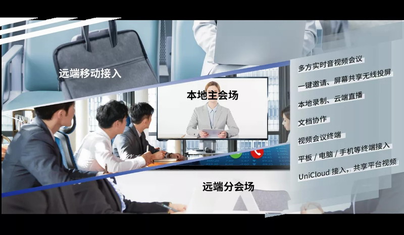 系統支持多方實時音視頻會議,支持一鍵邀請、屏幕共享、無線投屏、本地錄制、云端直播、文檔協作等多種功能,支持視頻會議終端、觸控平板、電腦、手機、瀏覽器等全場景終端接入。