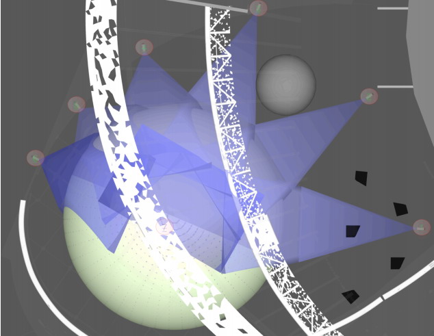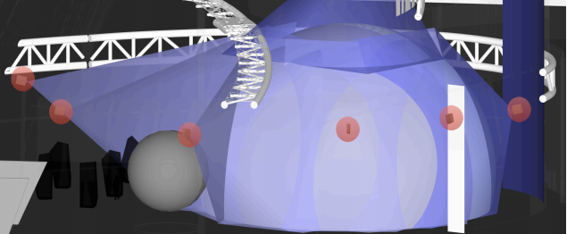 考慮到環(huán)境光和球體材質(zhì)對(duì)于投影成像的影響,贏康設(shè)計(jì)了數(shù)臺(tái)20,600 流明的科視激光投影機(jī)完成20米直徑的球體融合投影。