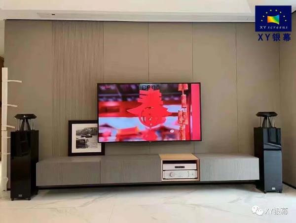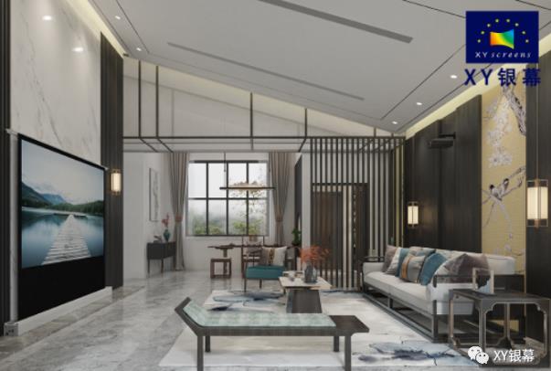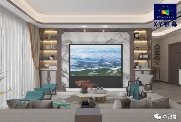 對于客廳背景墻裝修別樹一幟的家庭來說,無論是尺寸大的電視還是尺寸小的電視,放在客廳里都遠遠拉低了客廳的裝修設計。小尺寸電視觀看效果差,大尺寸電視則會遮住原本精美的背景墻。為不破壞背景墻的完整性可選擇XY豪華隱藏天花幕,完美隱藏天花之中,無需擔心漂亮的背景墻被破壞。