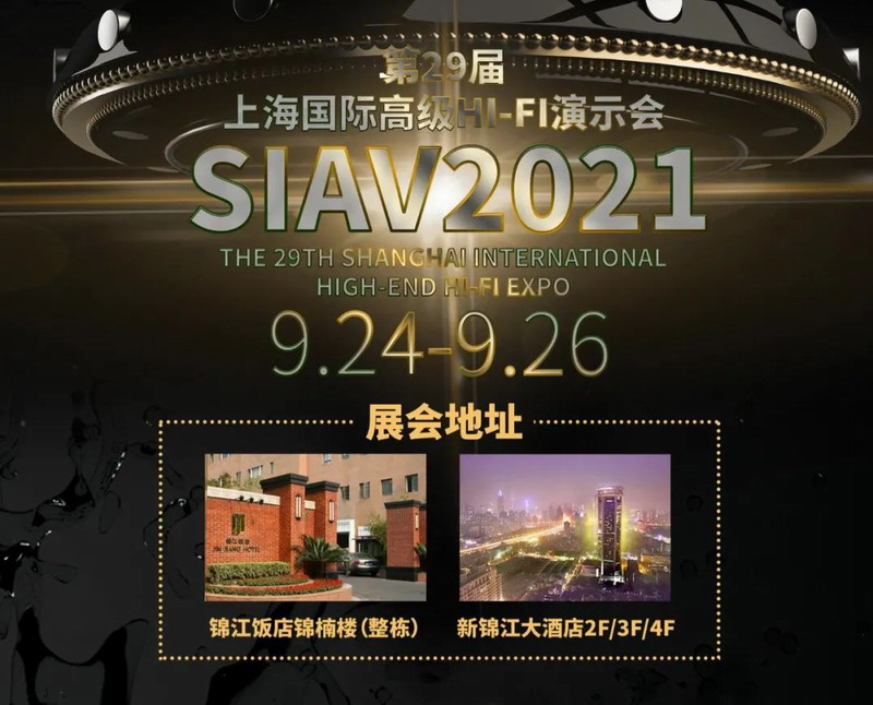 2021(第29屆)SIAV上海國際高級HI-FI演示會(以下簡稱“SIAV”)將于2021年9月24日-9月26日在錦江飯店與新錦江大酒店盛大舉辦。