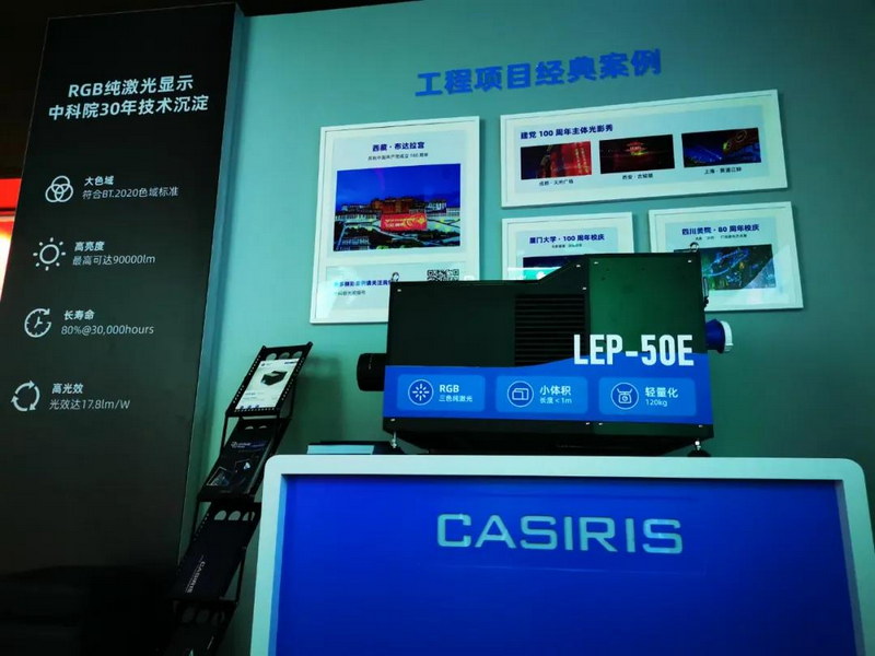 此外,中科極光還攜新品——LEP-50E系列RGB三色純激光投影機亮相。它是基于中國科學院理化技術研究所三十多年的技術積淀,研發而成。50E采用高緊湊一體化設計,亮度高達5萬流明;秉承了中科極光激光顯示產品一貫的長壽命和高光效特性。在展會期間,大量“科技控們”前來觀摩了解,斬獲一眾好感。
