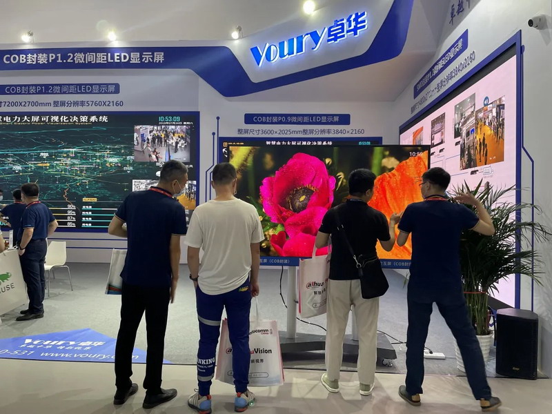 Voury卓華是業界領先的大屏幕顯示及拼接控制整體解決方案提供商,本屆展會主打應用場景現場模擬,現場共展出包括COB封裝LED顯示屏、SMD封裝LED顯示屏、LED智慧交互屏&LED智慧會議屏在內的多套拼接大屏幕進行展示,獲得來自業內、政府以及學術界的海內外參觀者的踴躍支持。