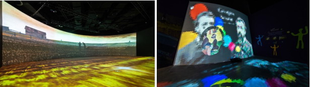 在本次舉辦的藝術展“時光印記•沉浸式藝術大師作品展”中,這些投影機通過三維投影的方式將十九世紀藝術家的經典之作呈現在觀眾面前。其中包括捷克畫家阿爾豐斯·穆夏、法國印象派畫家埃德加·德加、法國畫家尚-弗朗索瓦·米勒、荷蘭后印象派畫家文森特·梵高、俄羅斯畫家瓦西里·康定斯基、法國畫家亨利·馬蒂斯以及后印象派畫家喬治·修拉等藝術家的知名杰作。