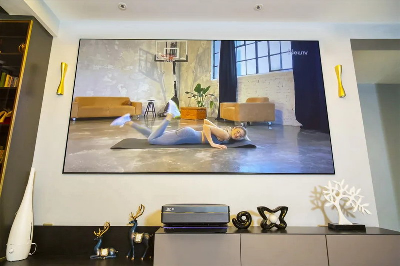 長虹激光電視DC87可在線語音搜索多種健身應(yīng)用,或直接手機(jī)投屏健身視頻,用超2米寬的大畫面來展示教練的動作,幾乎等身的比例讓教練就像在你們身邊;全家一起跟學(xué),站在客廳的邊邊角角也能看清畫面。
