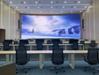 項目中的Cave空間由地面和墻面組成一個包圍形的碗狀,8.4米(寬)*5米(深)*3.3米(高)的顯示尺寸帶給參觀者廣闊的視野,隨著視頻的播放,鏡頭由遠及近,人站在走廊前仿佛也跟著走進了畫面中,逼真的臨場感讓參觀者能切身感受到江旅城的整體規劃及設施建設。