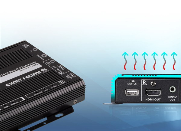 VE1843 擁有無風扇的散熱外殼,可確保高效能的散熱,防止因過熱及風扇故障造成信號傳輸中斷,亦可提高耐用性。