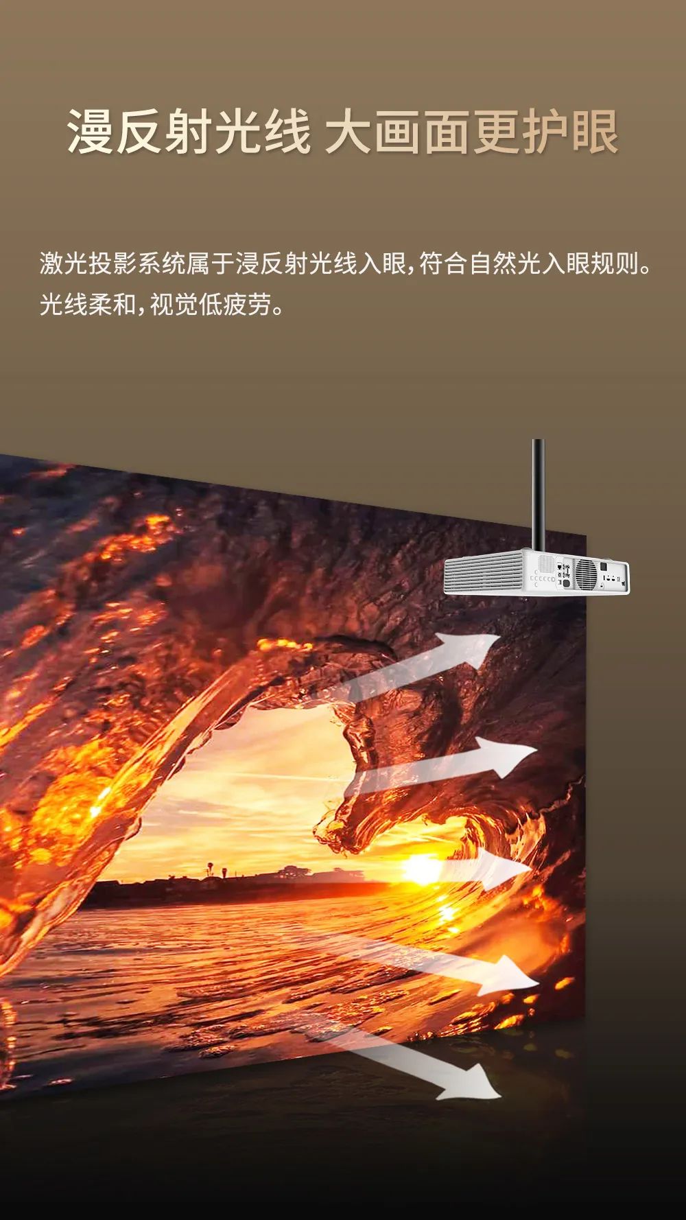 漫反射光線,相對直射光源的電子屏幕,觀看投影眼睛更舒適,有效緩解視疲勞。